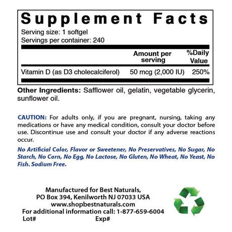 Best Naturals Vitamin D3 2000 IU 240 Softgels