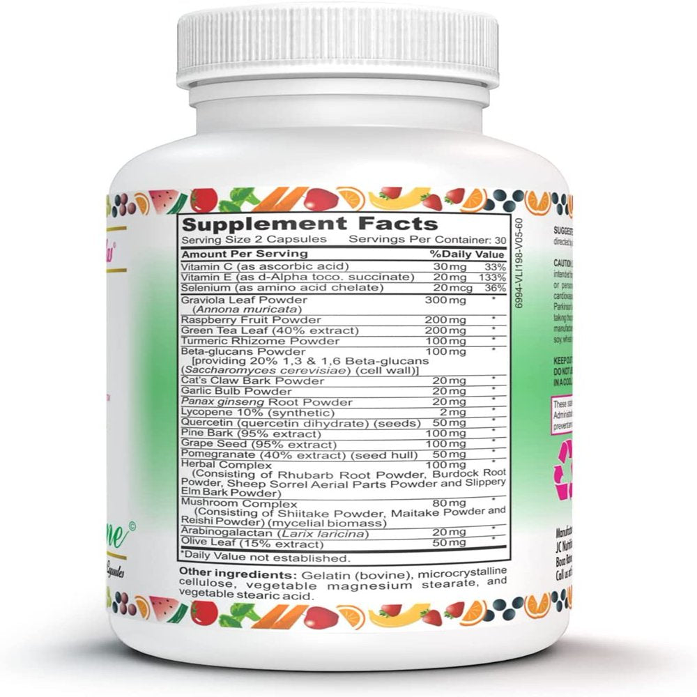 • Natural Ingredients: This supplement uses an array of natural ingredients chosen specifically for immune support, such as pine bark, green tea leaf , grape seed, a mushroom complex, and many more!