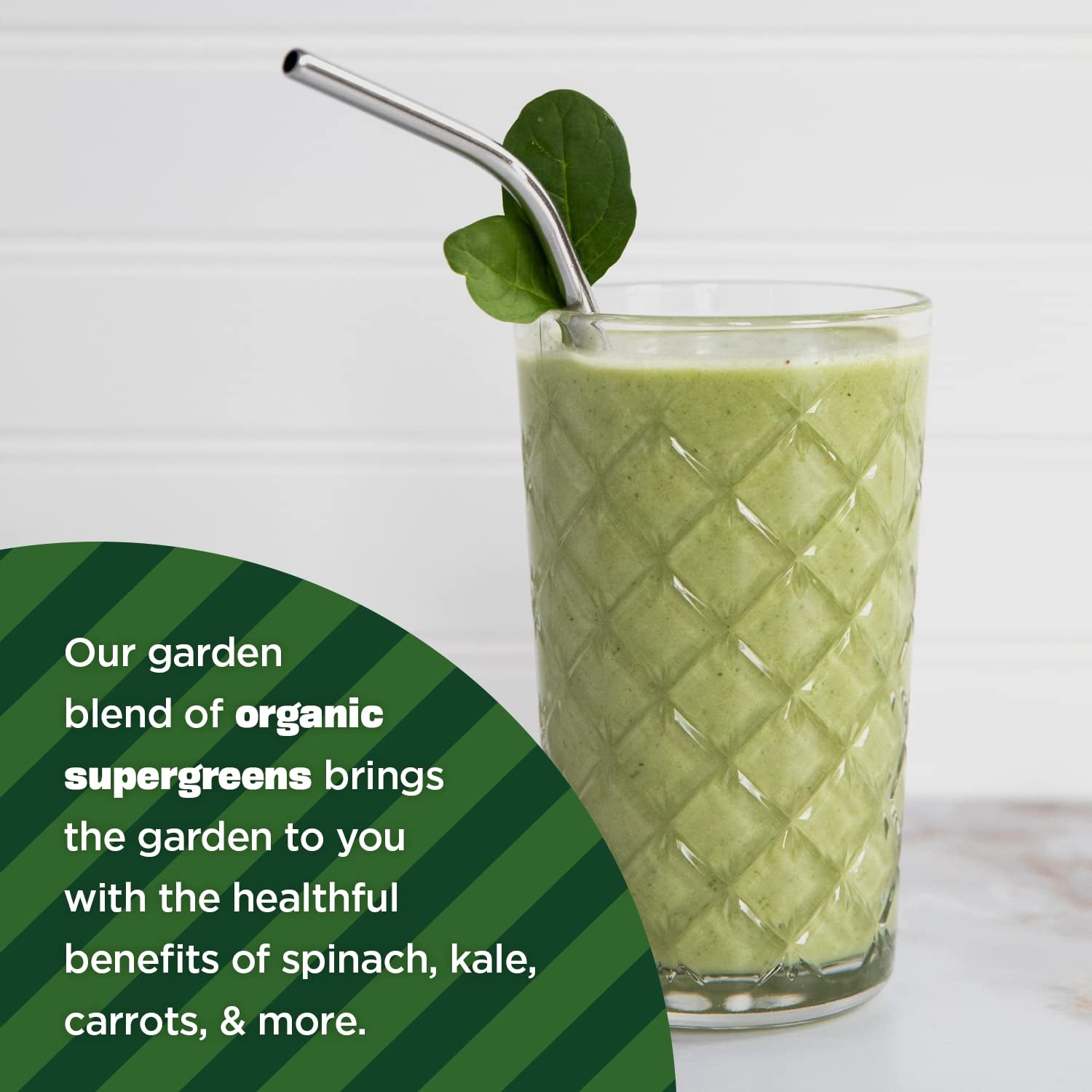 - SUPPORT YOUR DAILY GREENS INTAKE: Our garden blend of supergreens brings the garden to you – enjoy the benefits spinach, kale, carrot, & more to easily bring the vitamins and minerals needed to take on your day & feel nourished.