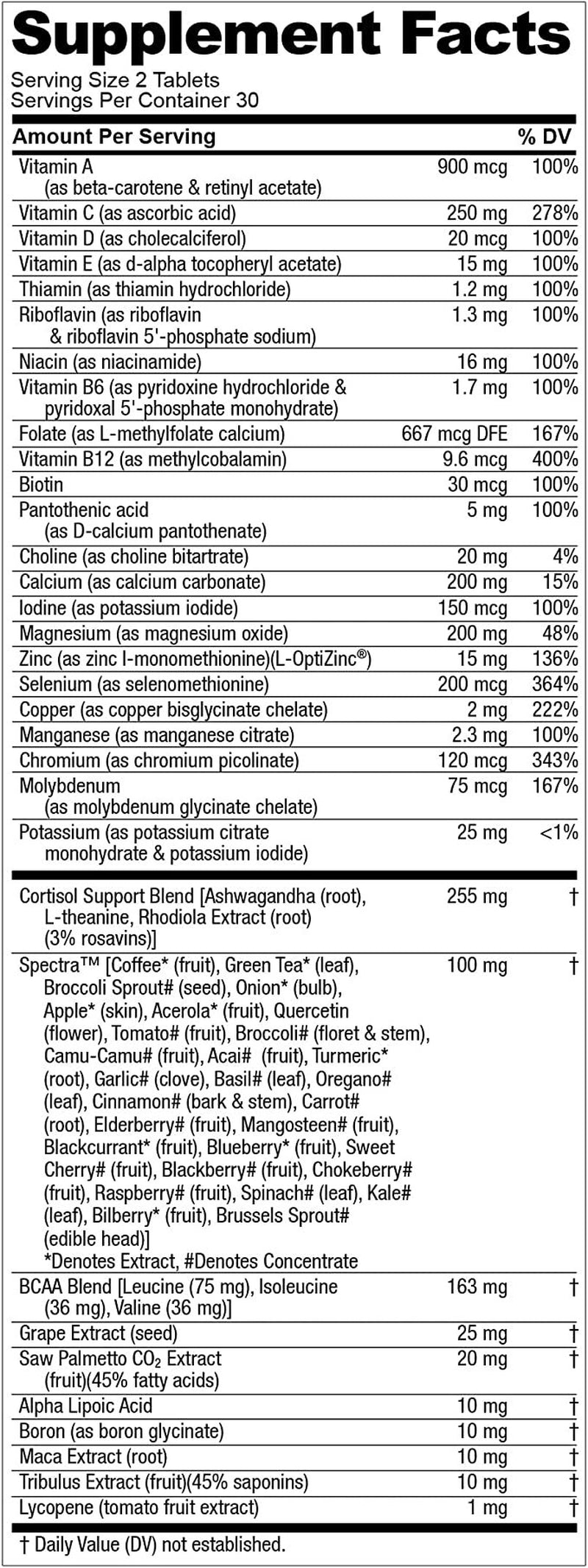 Nugenix Men'S Daily Testosterone Multivitamin Supplement, 22 Vitamins & Minerals, 60 Ct