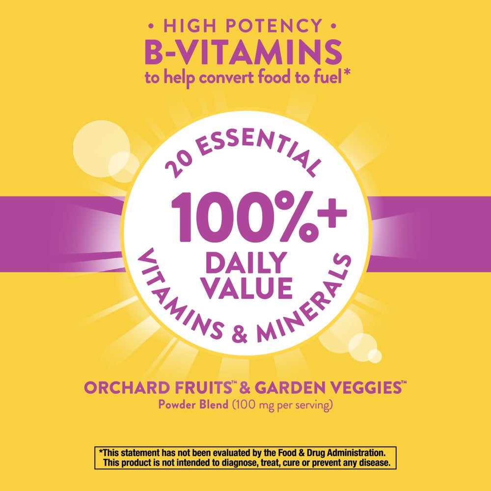 - Contains food-based Orchard Fruits™ & Garden Veggies ™ powder blend (100 mg per serving).