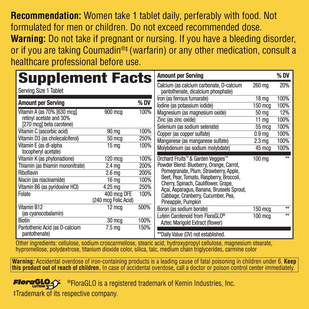 - Complete daily multivitamin optimized for women’s cellular energy and wellness, formulated with 100% or more of Daily Value of 20 essential vitamins and minerals.*