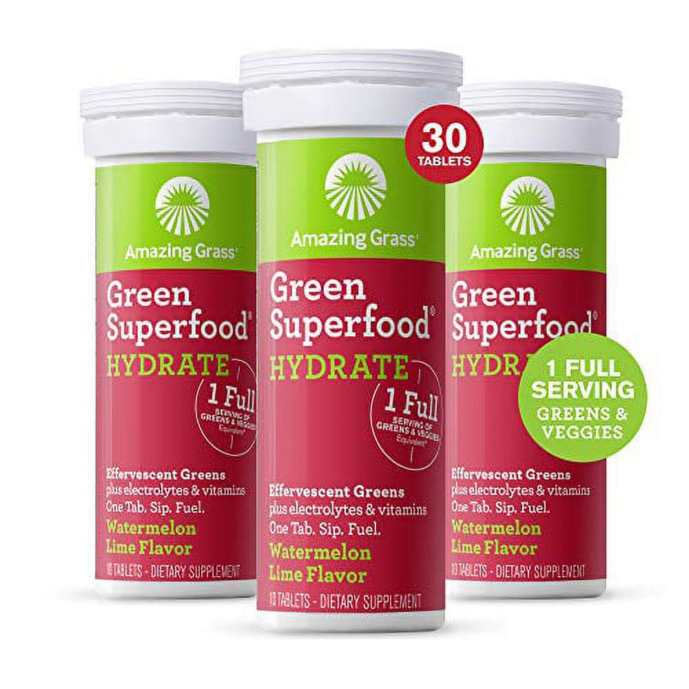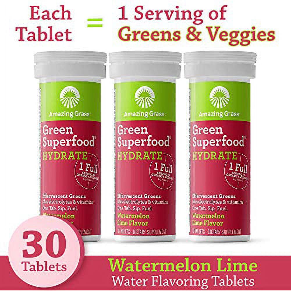 Amazing Grass Effervescent Electrolyte Tablets: Greens + Hydration Water Flavoring Tablet with Vitamins, Watermelon Lime, 30 Count