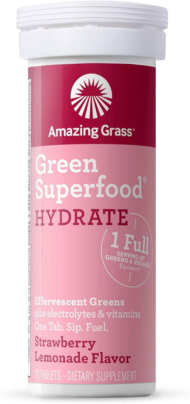 Amazing Grass Effervescent Tablets, Green Superfood Hydration Water Flavoring Tablet, Electrolyte, Vitamins and One Serving of Greens, Strawberry Lemonade Flavor, 10 Count