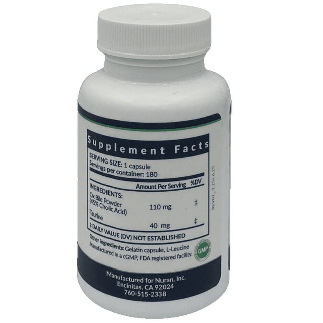 Bile Salts Booster | Ox Bile Salts & Taurine | for Gallbladder and No Gallbladder | Aids in Breakdown & Absorption of Foods Including Fat-Soluble Vitamins A, D, E, K | 180 Capsules | 110Mg