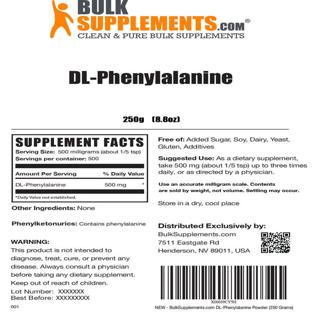 BulkSupplements.com DL-Phenylalanine Powder Features:
