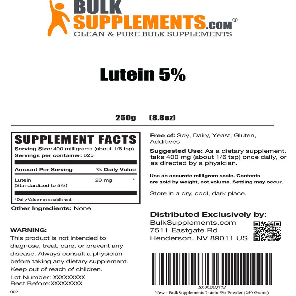 Bulksupplements.Com Lutein 5% Powder - Lutein 20Mg - Eye Vitamins for Vision - Vegan Lutein - Vision Supplements - Eye Support (250 Grams) - 250 Grams (8.8 Oz) is backordered and will ship as soon as it is back in stock.