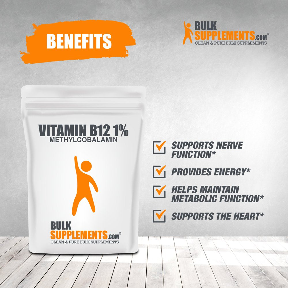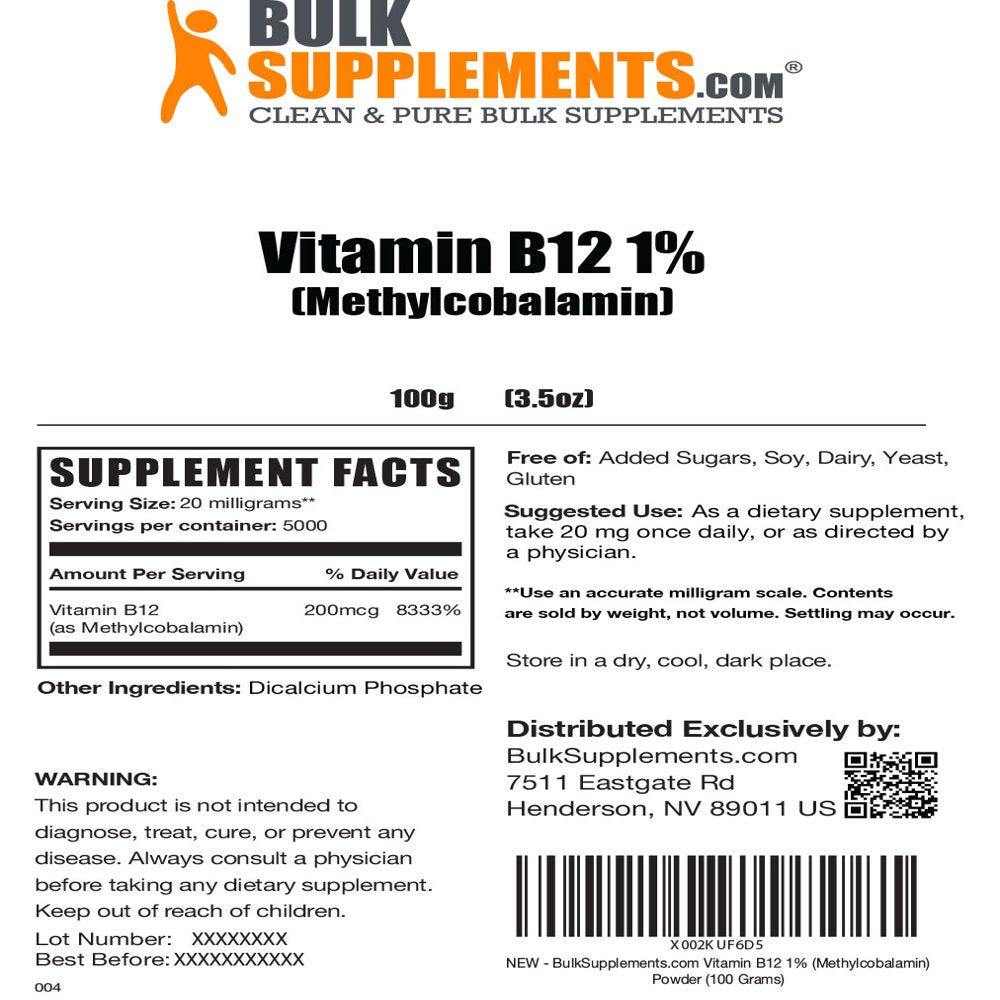 Bulksupplements.Com Vitamin B12 1% Methylcobalamin - B12 Vitamins - Vegan B12 - Energy Vitamins - Vitamin B12 Supplements (100 Grams)