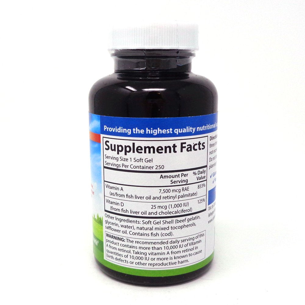?Vitamin A & D provides 25,000 IU (7,500 mcg RAE) of vitamin A from palmitate and fish liver oil and 1,000 IU (25 mcg) of vitamin D3 from cholecalciferol and fish liver oil to support healthy vision and immune system function.?