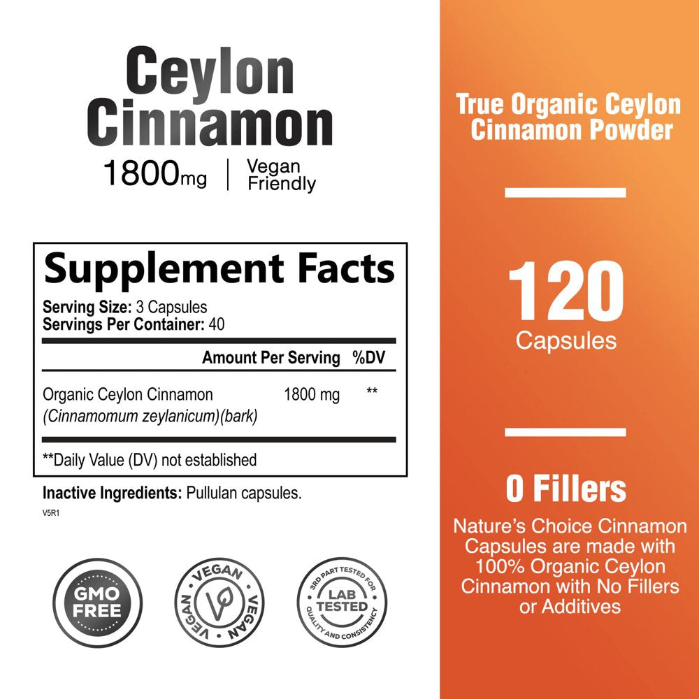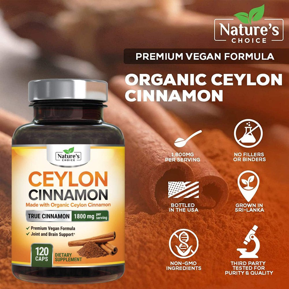 - Ceylon Cinnamon Capsules by Nature's Choice: Organic 1800MG cinnamon powder supplements sugar supplement pills sticks natures ground canela support nutrition lower cinammon vinegar apple pure cylon cider true verum cinamon 1000mg 2000mg caps 1800
