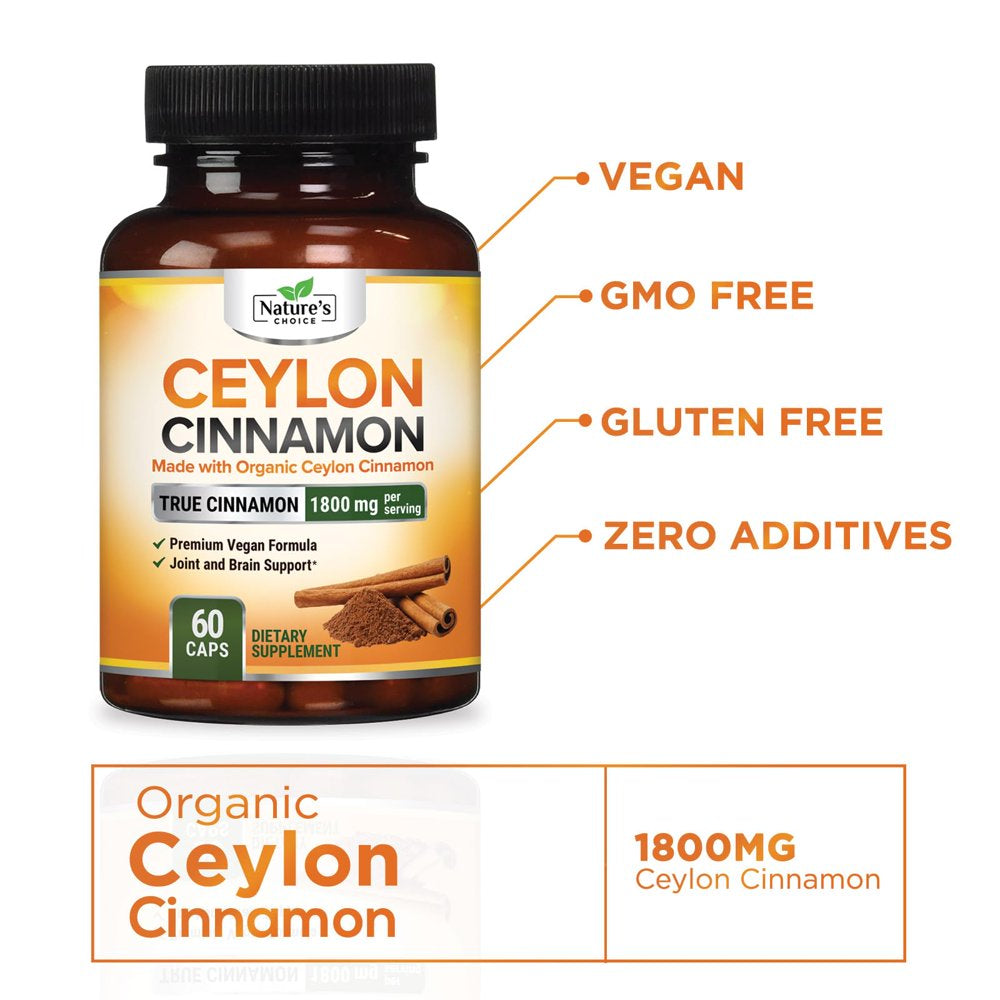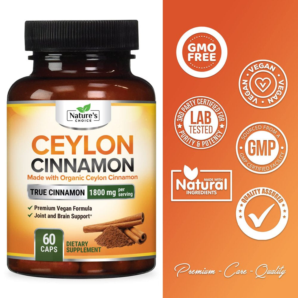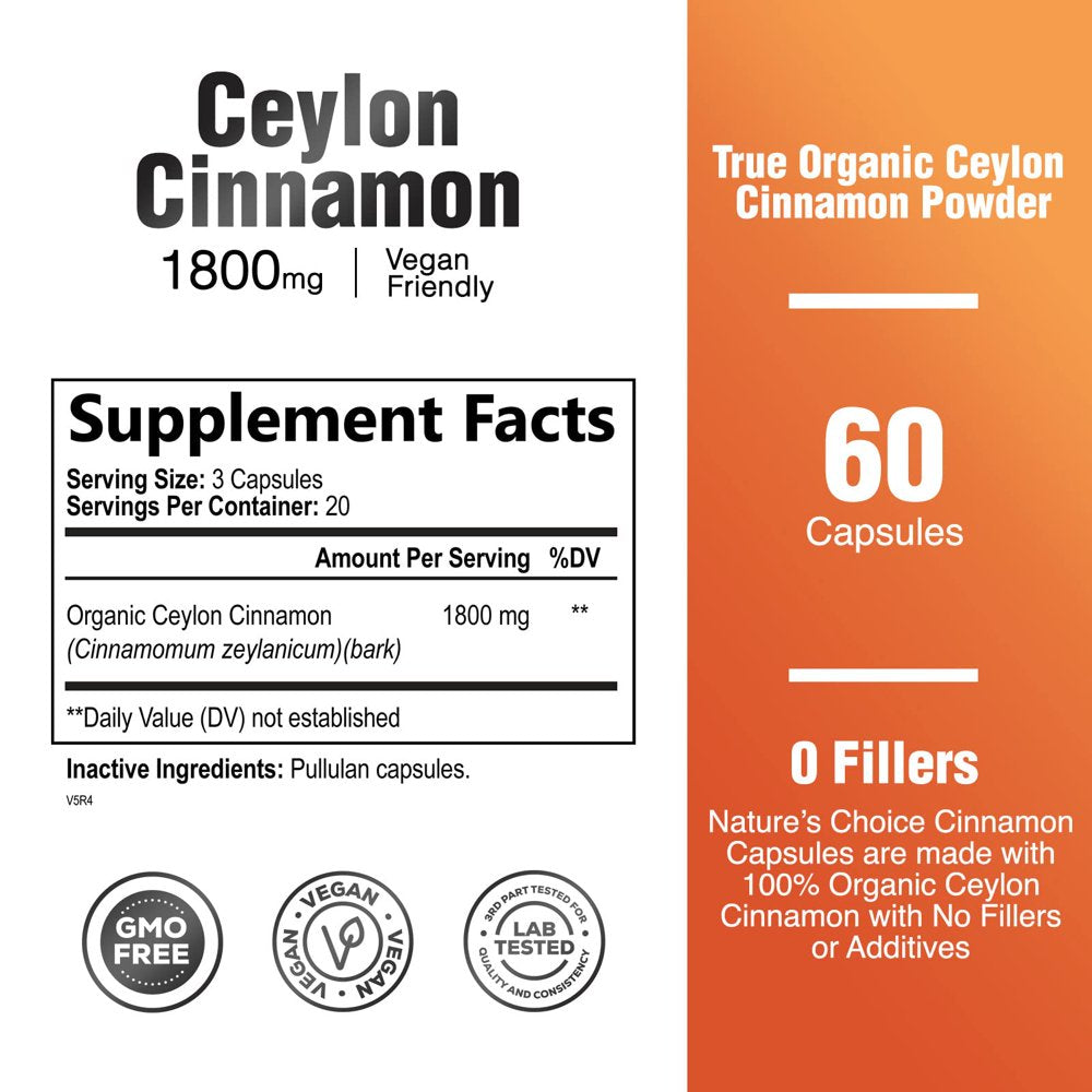 - Ceylon Cinnamon Capsules by Nature's Choice: Organic 1800MG cinnamon powder supplements sugar supplement pills sticks natures ground canela support nutrition lower cinammon vinegar apple pure cylon cider true verum cinamon 1000mg 2000mg caps 1800
