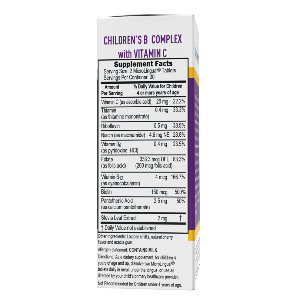 - · Child B-Complex Vitamins supplements with calcium and folic acid for cellular support