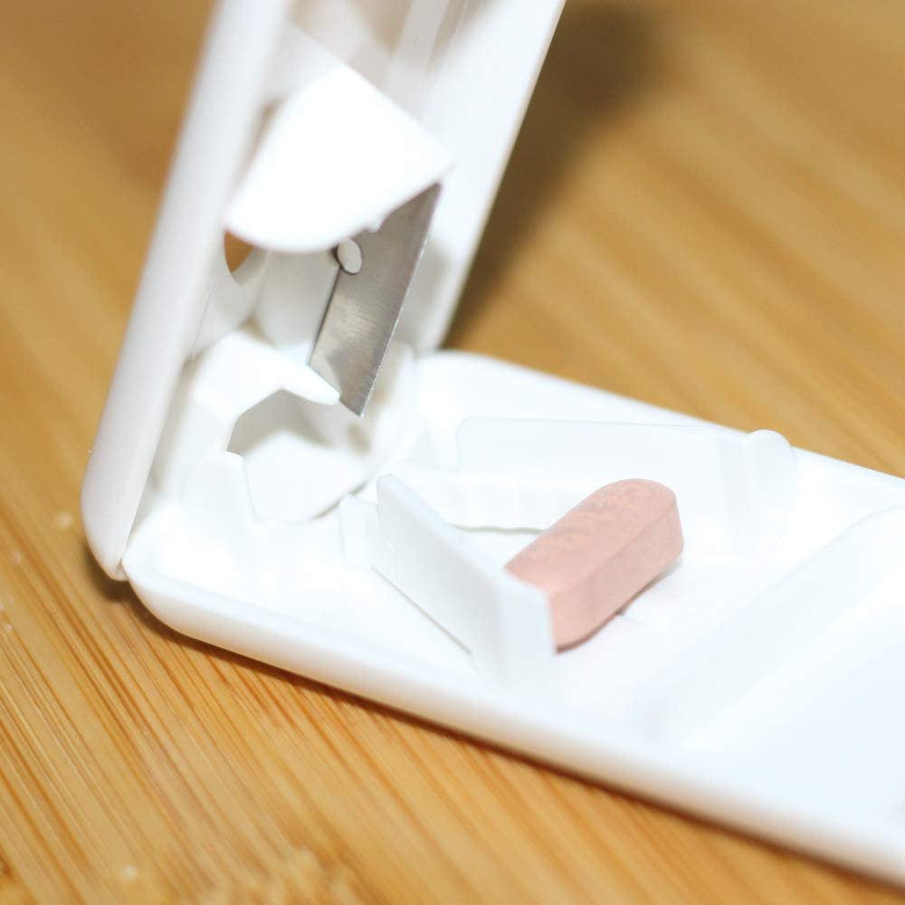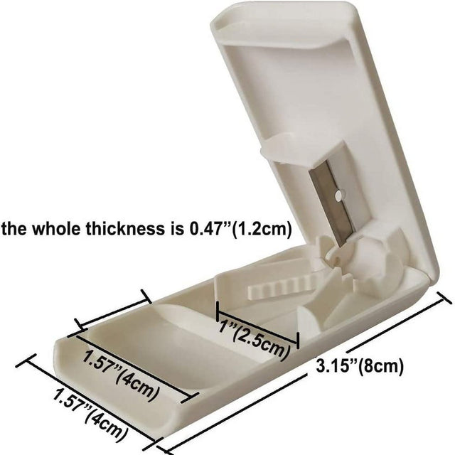 - Made from Optical grade polycarbonate with a flexible V-shape holder to grip any size pill for accurate cutting.