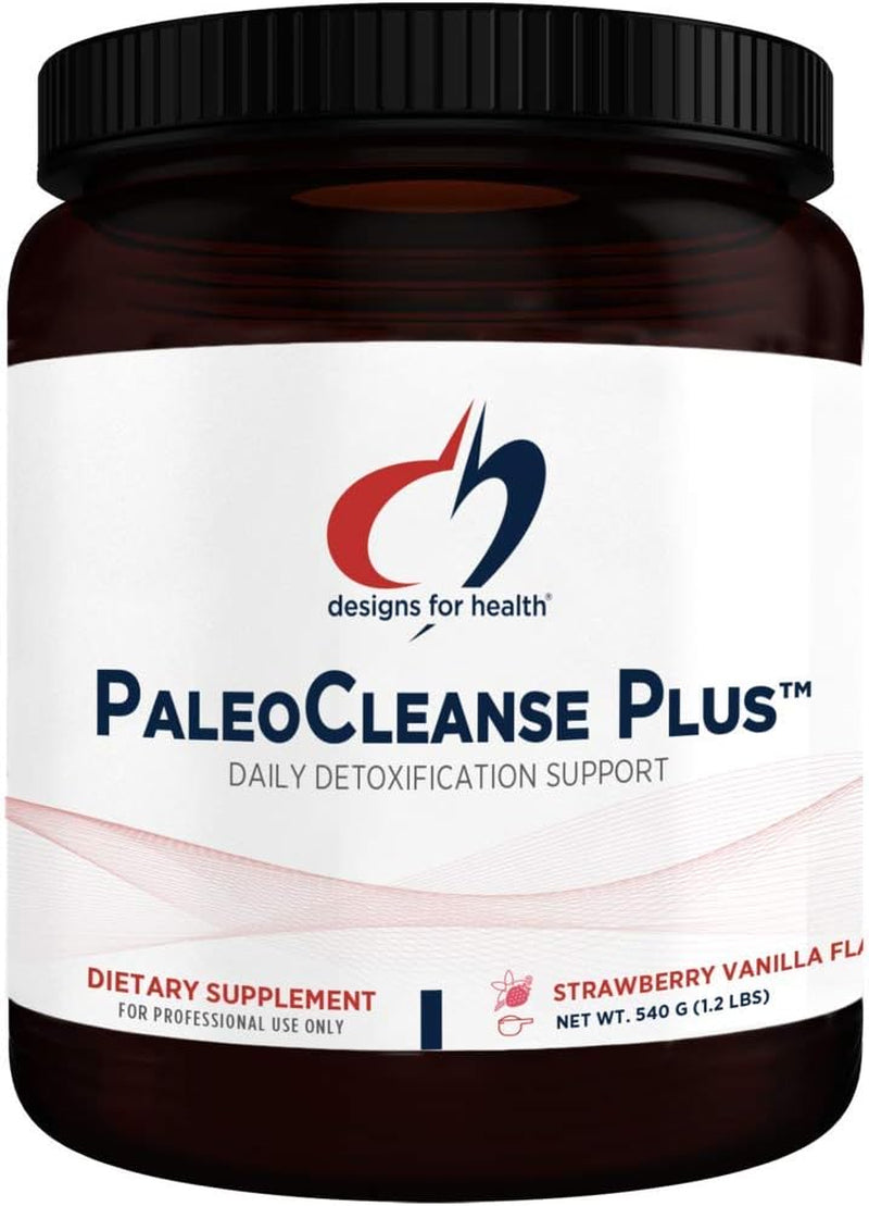 Designs for Health Paleocleanse plus - Detox Powder with 18G Bone Broth Protein, Antioxidant Herbs, Vitamins + Minerals - Smoothie Shake Drink Mix, Strawberry-Vanilla Flavor (15 Servings / 540G)