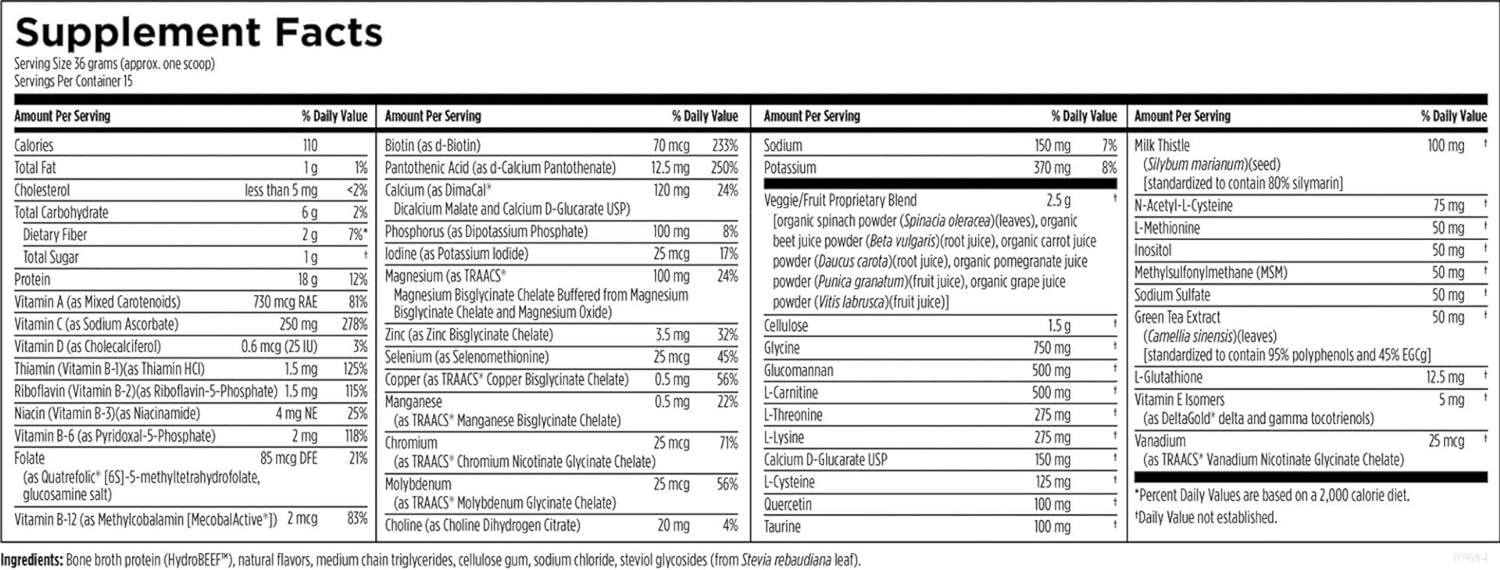 • Comprehensive Cleanse Drink Mix - Stay satisfied while cleansing with this powerful combination of bone broth protein, nutrients, antioxidants, herbs (milk thistle & more), fiber, and a fruit / vegetable blend to support detoxification.*