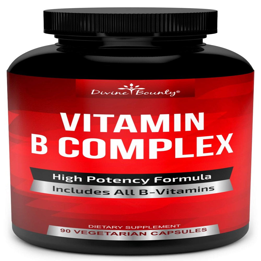 Divine Bounty Super B Complex Vitamins - All B Vitamins Including B12, B1, B2, B3, B5, B6, B7, B9, Folic Acid - Vitamin B Supplement - Support Healthy Energy Metabolism - 90 Vegetarian Capsules