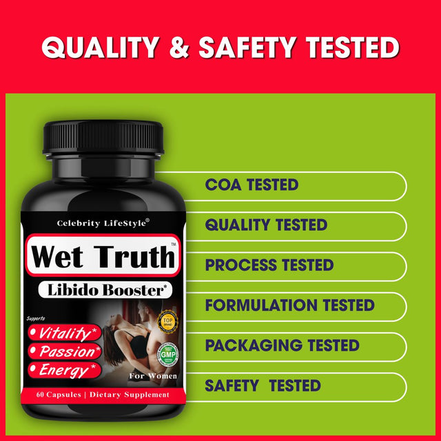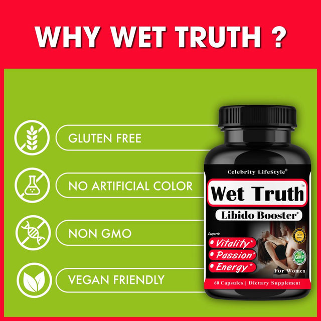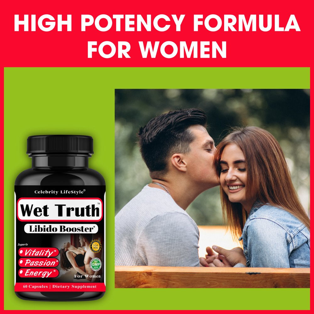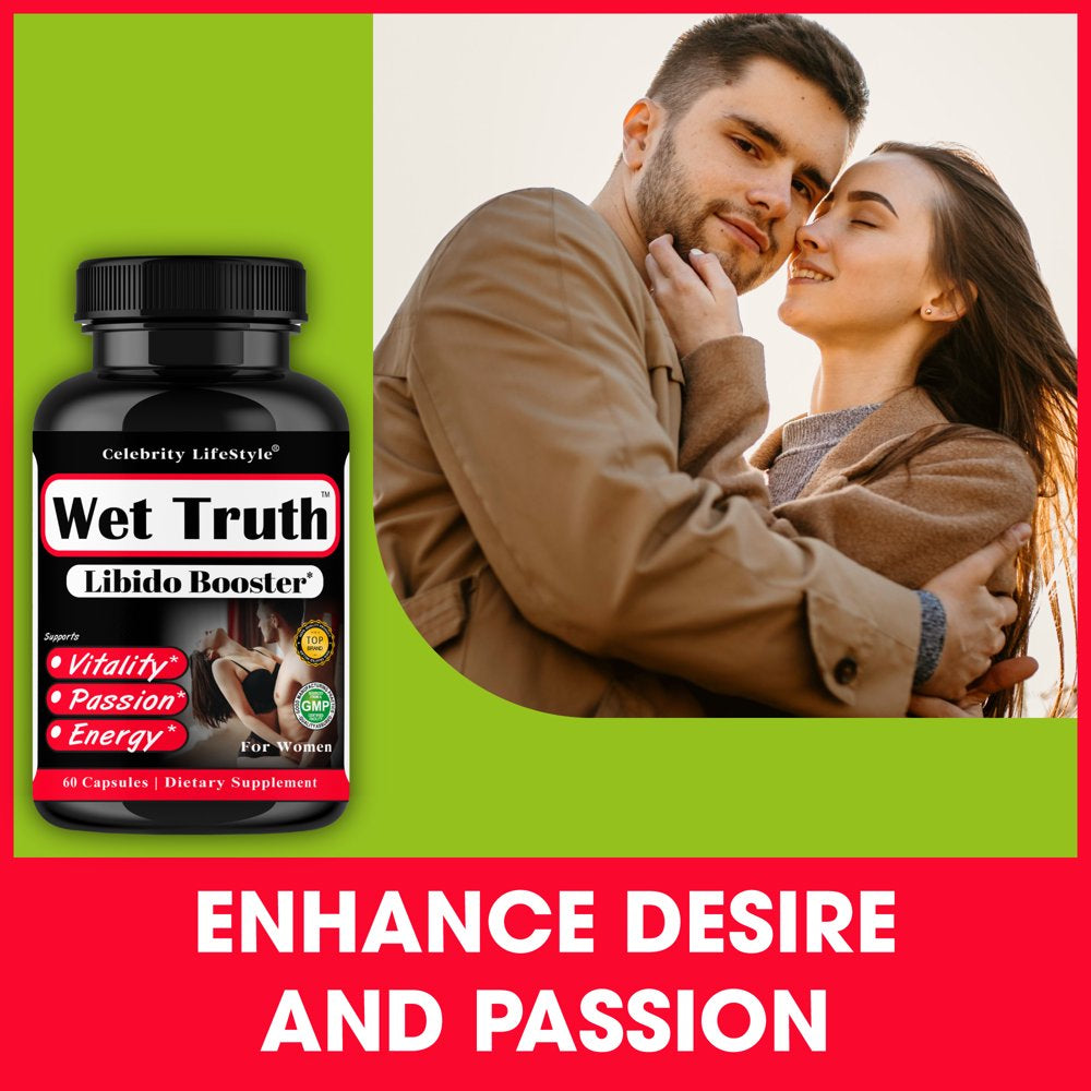 Feeling run down, stressed, and exhausted? This pill can help. By balancing your hormones and supporting your energy, you'll start to feel like yourself again in no time. These Female libido Support pills have been specifically designed to help supporting ENERGY and vitality. Bring out the beauty goddess within you! Wet Truth Female Libido Formula boosts your energy, libido, desire and mental clarity! Natural energy enhancement for women. Our Female Libido Formula contains a proprietary formula of herbs known to support libido, desire and in women. This brings back passion, energy and mental alertness. Includes Epimedium Horny Goat Weed, MACA, Tribulus Terrestris, Tongkat Ali, Ginseng and other herbs well known to Supports libido, energy, mental clarity and health. Horny Goat Weed has been used for centuries as a natural enhancement for libido, desire and energy. We have combined it with 8 synergistic ingredients that Supports the effect of the Epimedium Horny Goat Weed for maximum effectiveness.