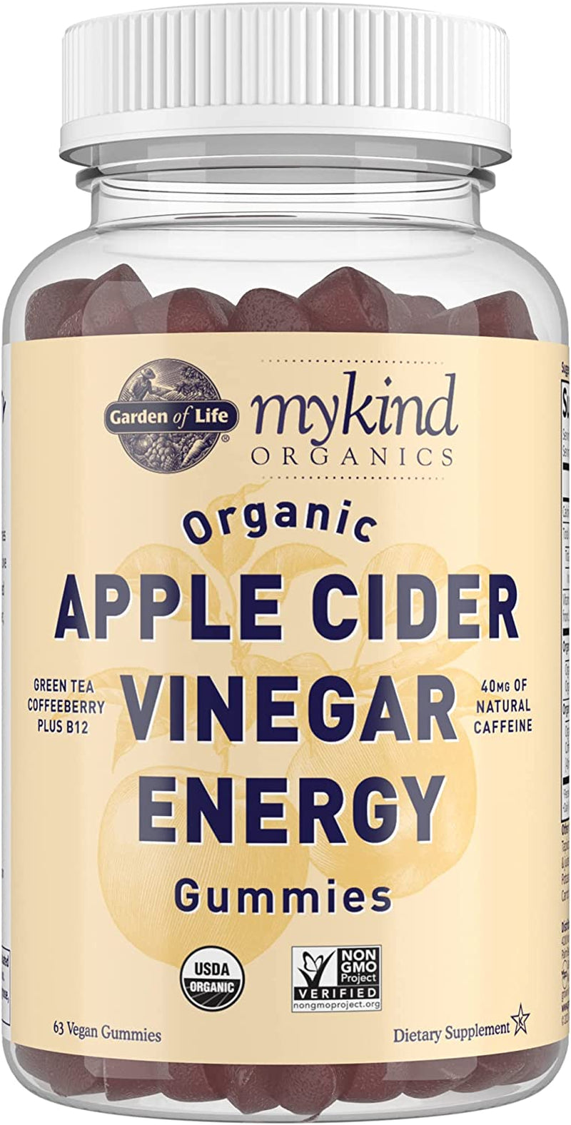 Garden of Life Apple Cider Vinegar Energy Gummies USDA Organic ACV Gummy Vitamins for Energy with Vitamin B12, Coffeeberry, Green Tea - 63 Vegan Gummies for Mental Focus, Clarity