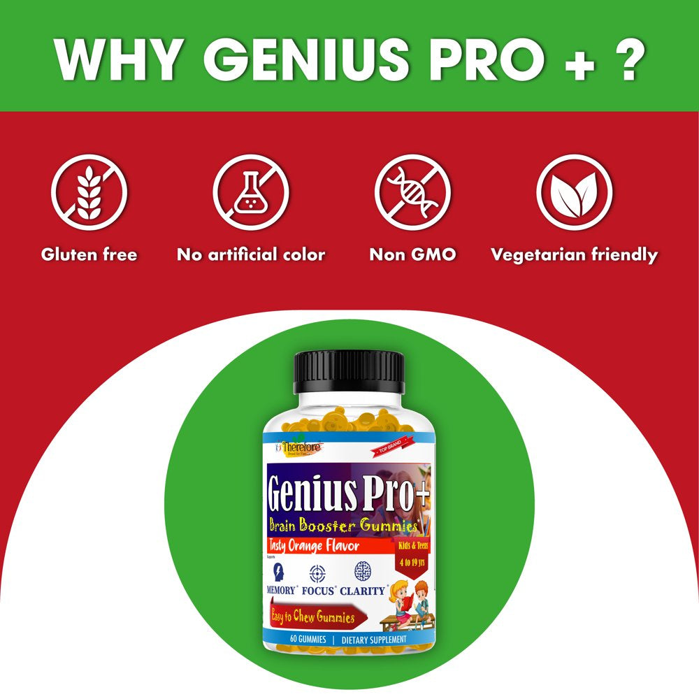 - Natural and Trusted Formula: Made with quality, organic ingredients GeniusPro+ kids brain focus supplement support brain function is GMP tested comes in a delicious chewable gummy format. this brain booster supplement for focus, memory, clarity, energy help your child focus better on daily tasks! These children vitamins are free from artificial colors, flavors, and preservatives.