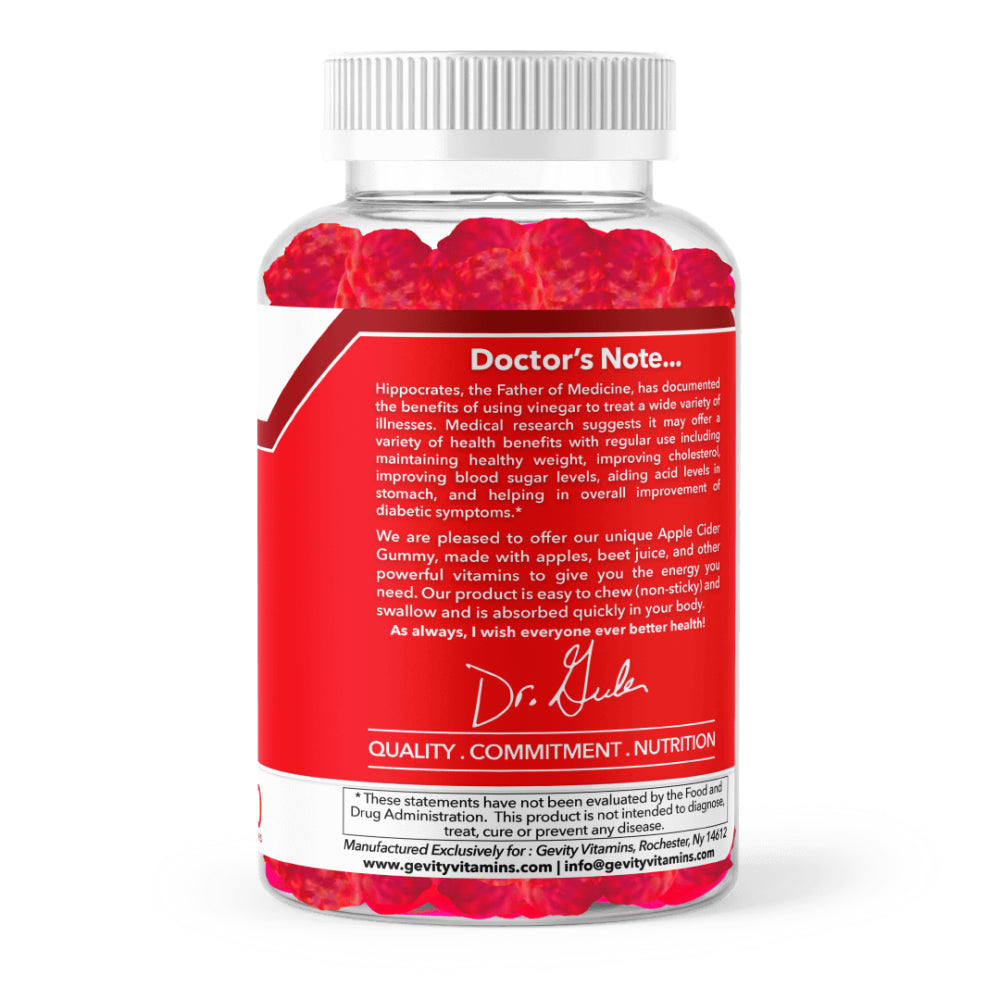 Our products were designed with the entire family in mind. That said, we designed supplements to provide individuals with healthy alternatives to improve their general health. Most individuals are interested in taking responsibility to feel better, have more energy, and lead productive and meaningful lives. This is why Gevity Vitamins were produced. As a leading vitamin supplements manufacturer, we continue to add new product lines to address a variety of health issues and conditions to meet the needs of the entire family. Shape and size of a small goli ball, Our Apple Cider Vinegar Gummies produce the same benefits as traditional Apple Cider Vinegar without the unpleasant taste! Pure Apple Cider Vinegar Gummies by Gevity Vitamins, ACV Improves Digestion - Helps Weight Loss, 60 count Dietary Supplement. Doctor's Recommended. 30 servings.