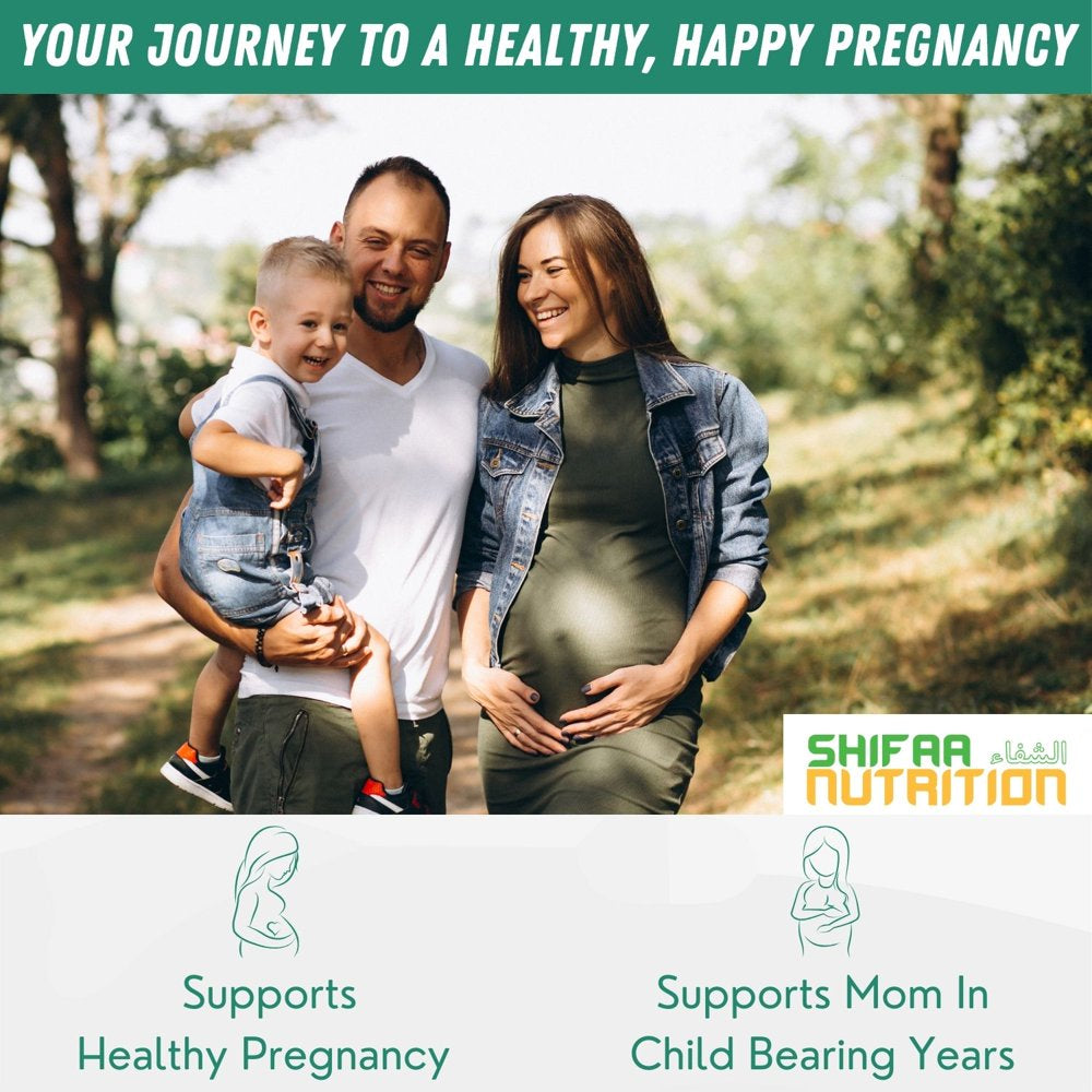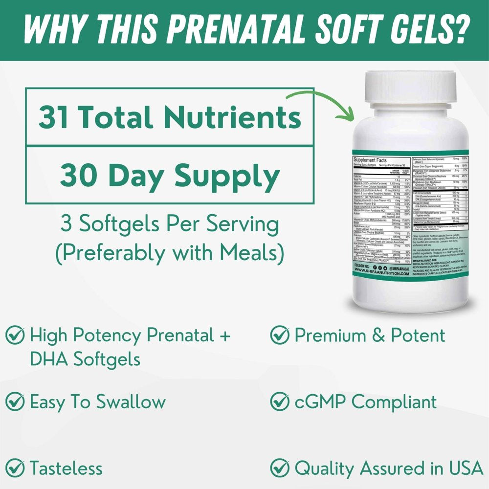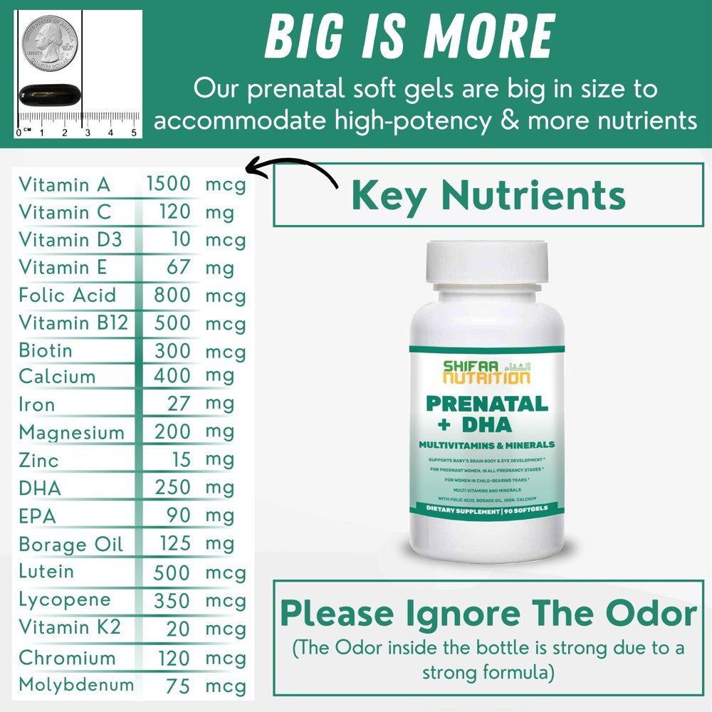 Halal Prenatal Vitamins with DHA and Folic Acid | 30 Servings: DHA 250Mg, Folic Acid 800Mg, EPA 90Mg, Lutein 500Mg, Borage Oil 125Mg, Iodine 50Mg, Calcium 400Mg | Halal Vitamins | SHIFAA NUTRITION