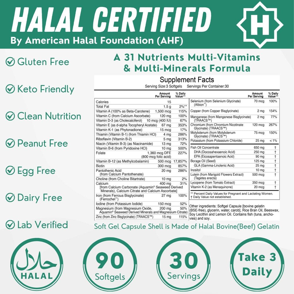 Halal Prenatal Vitamins with DHA and Folic Acid | 30 Servings