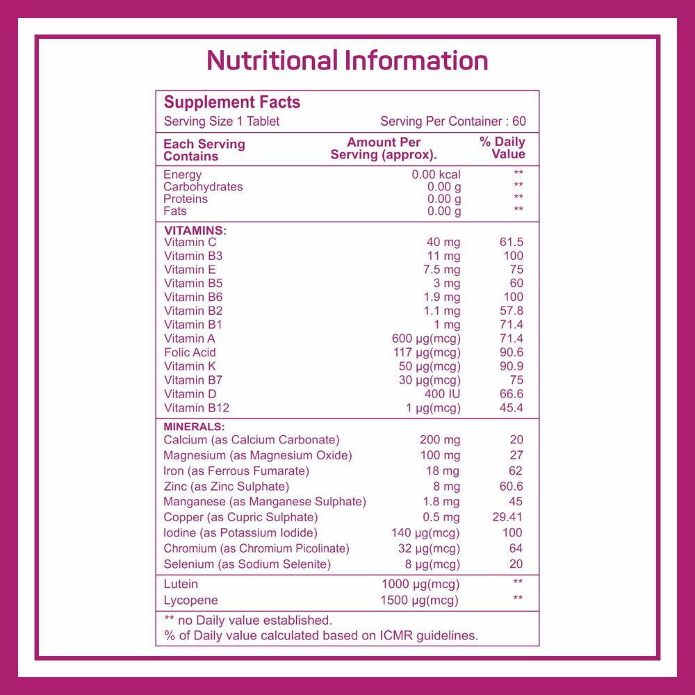 Healthvit Cenvitan Multivitamin for Women - 60 Tablets with 24 Nutrients (Vitamins and Minerals) | Anti-Oxidants, Energy, Metabolism, Immunity, Beauty and Healthy Appearance