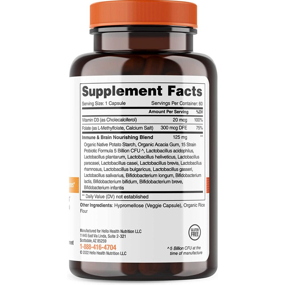 Hello Health Belly Great Daily Probiotic for Women, Men, Kids - Gut Health Immune Support Stress Relief and Vitamin D3, Folate, B Vitamins - 60 Count