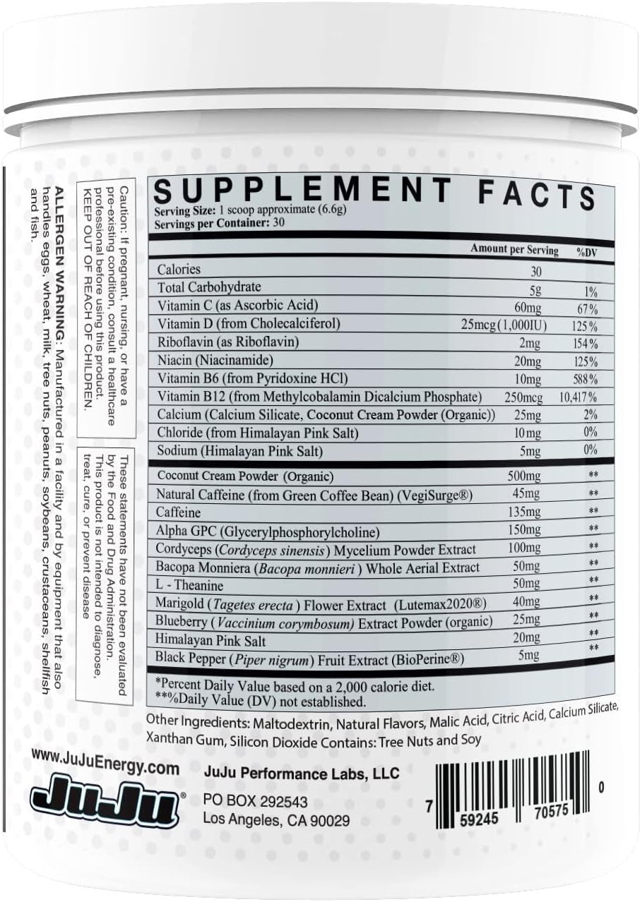 Juju Pina Colada Gaming Energy Drink Mix - Energy Supplement, Supports Focus, Endurance, Concentration, Eye Health. Natural Caffeine, Vitamins is backordered and will ship as soon as it is back in stock.