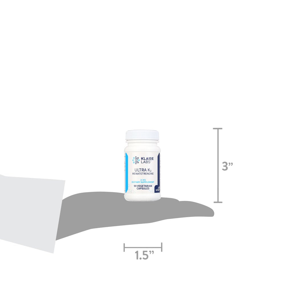 Klaire Labs Ultra K2 Menatetrenone 15000Mcg - Vitamin K2 Supplement for Bone & Cardiovascular Support - 15Mg K2 Vitamins for Men & Women - Hypoallergenic Vitamin K as MK4 (90 Capsules)