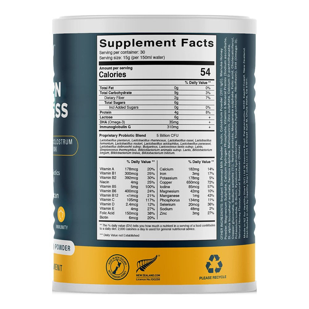 - DELICIOUS COLOSTRUM & HONEY POWDER - Combines New Zealand Manuka honey and ethically sourced colostrum powder from A-Grade grass-fed bovine, with added probiotics, and Omega 3 to create a perfect daily health & vitality drink