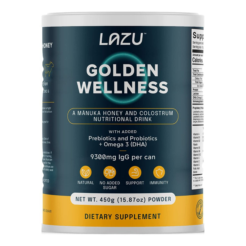 - MAXIMIZE YOUR BODY PERFORMANCE - Lazu Golden Wellness with colostrum and Manuka Honey Powder contains natural growth factors and lactoferrin along with essential vitamins, and minerals to maximize body performance, strengthen immunity, and help restore a leaky gut