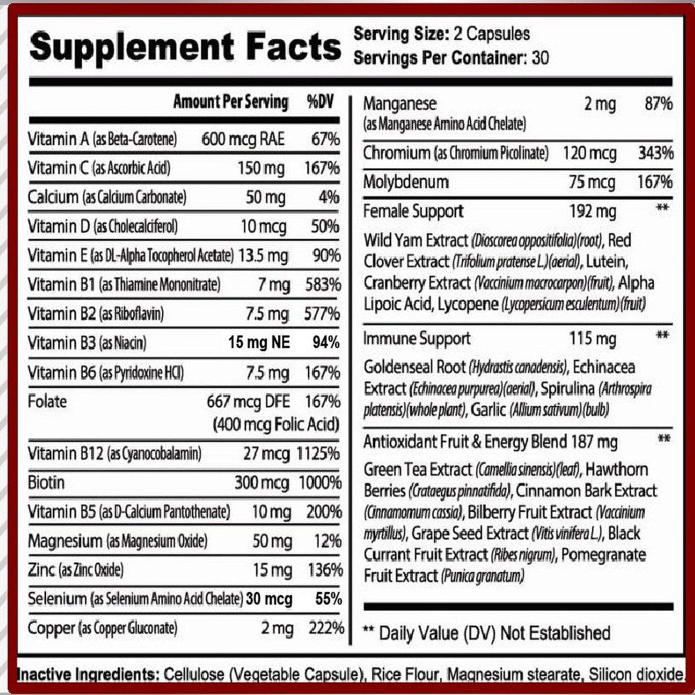 FORMULATED FOR FEMALE SUPPORT Support Increased Energy & Stamina Aid Improved Focus Supports Optimal Heart Health Supports Optimal Metabolism Assist Immune Support Via Proper Gut Health