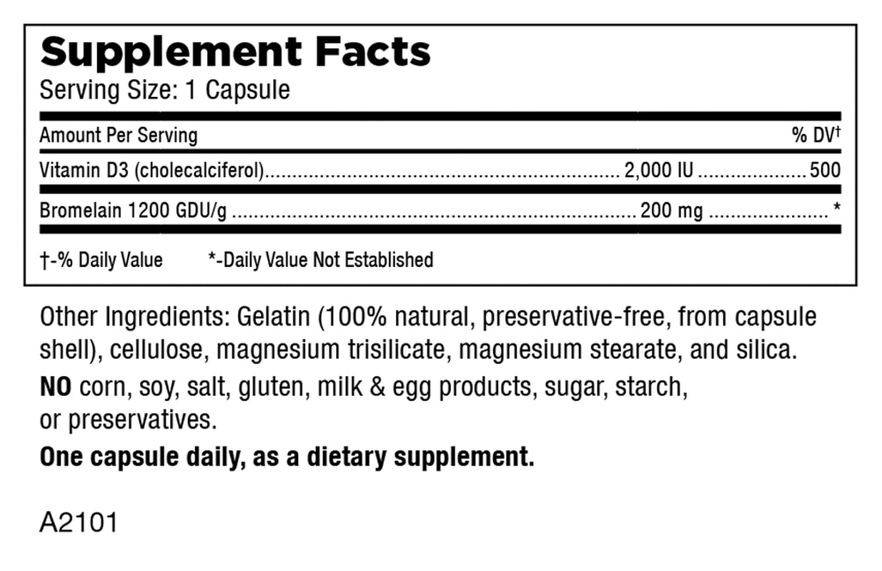 - GOOD VITAMIN D: 2000 IU D-3 with Bromelain