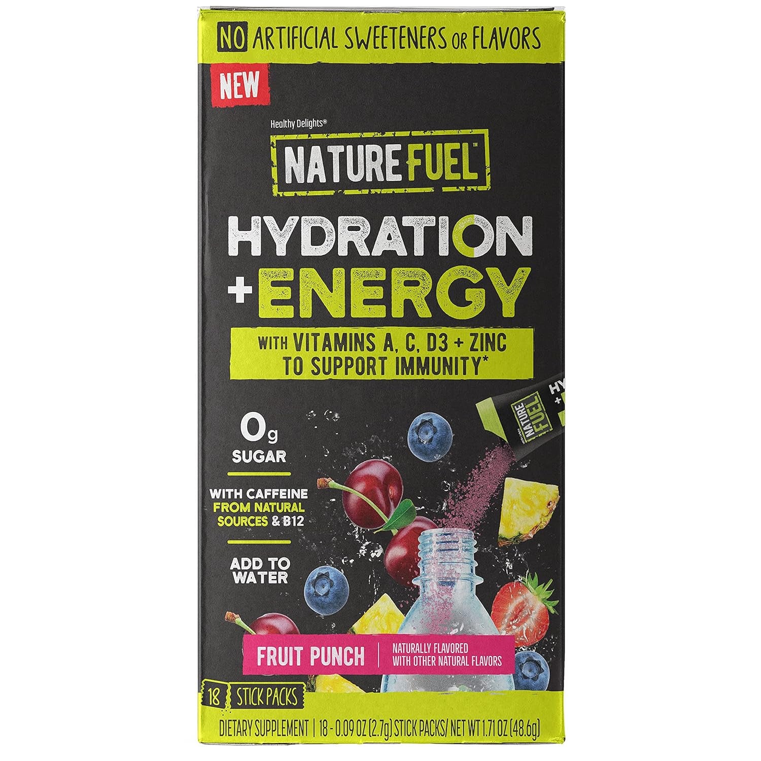 Nature Fuel Hydration + Energy - with Vitamins A, C, D3, & Zinc to Support Immunity - Fruit Punch Flavor - 18 Stick Packs - Pantry Friendly