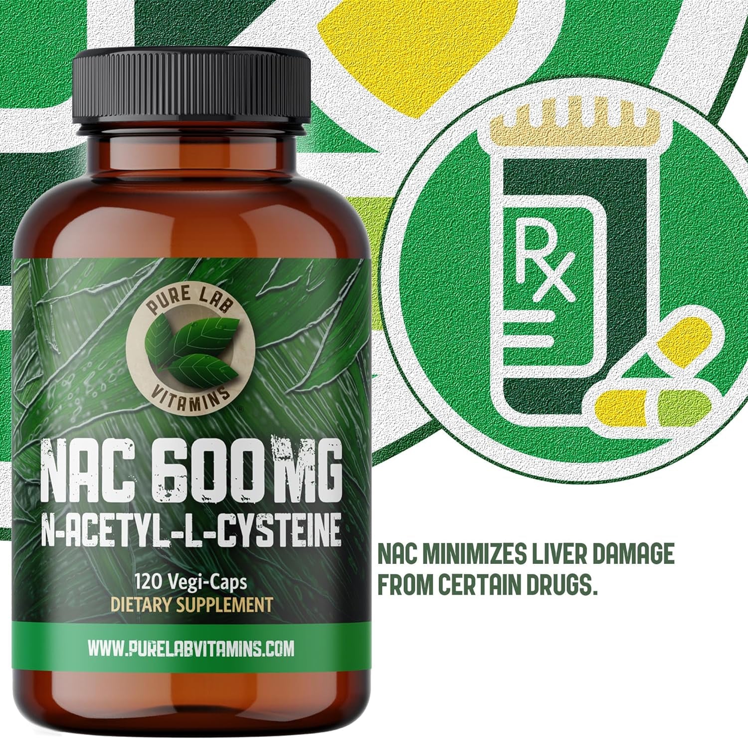 Pure Lab Vitamins NAC (N-Acetyl-Cysteine) 600 Mg - 120 Caps Made in Canada