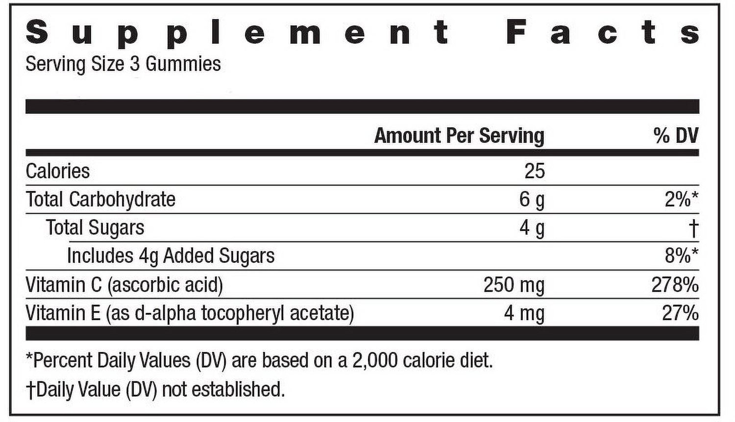 - HIGH POTENCY OF VITAMIN C PLUS VITAMIN E: Each delicious gummy provides a high-potency source of antioxidant vitamin C, and an excellent source of vitamin E, Packaging May Vary