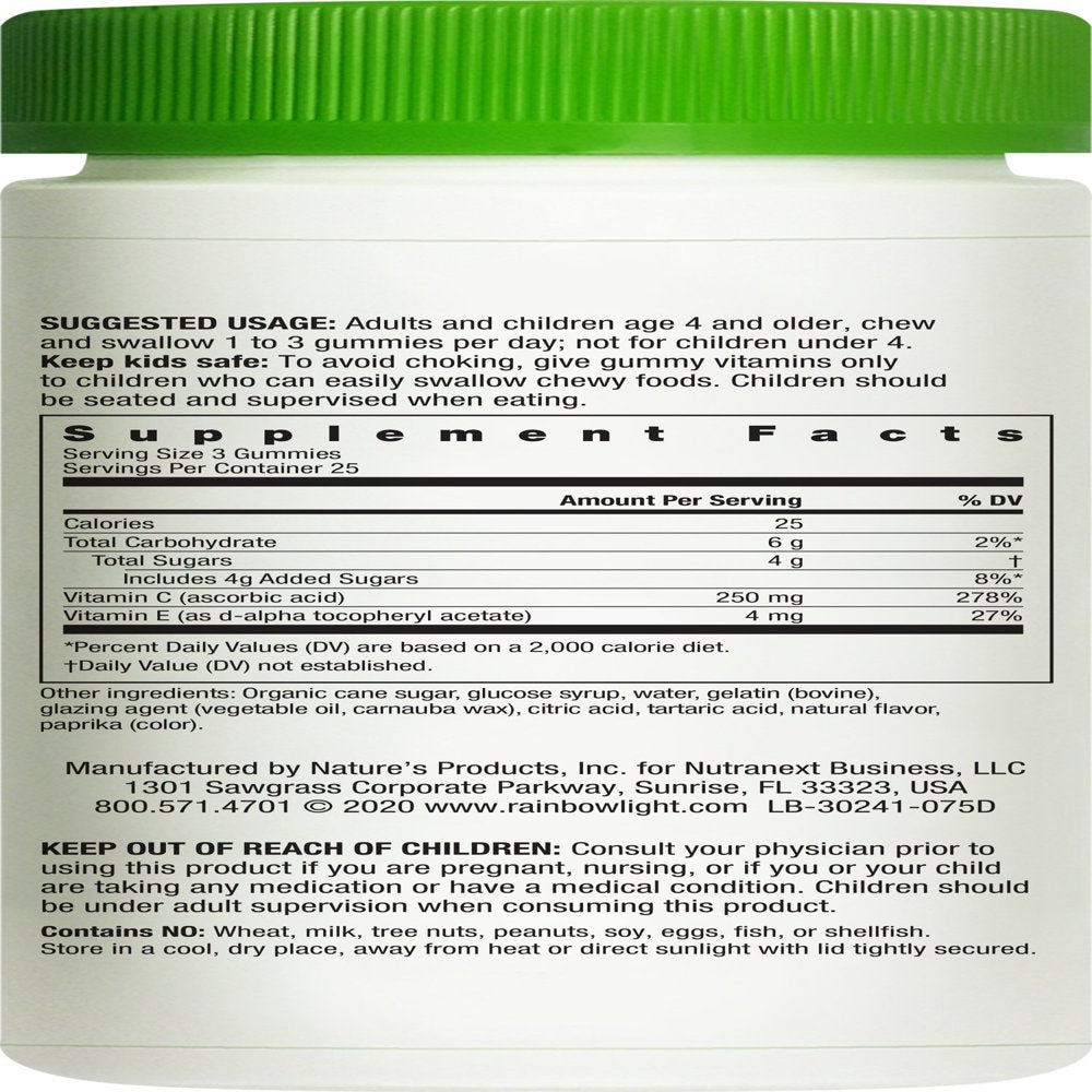 Rainbow Light Vitamins C and E Dietary Supplement Gummies, Citrus, 75 Count
