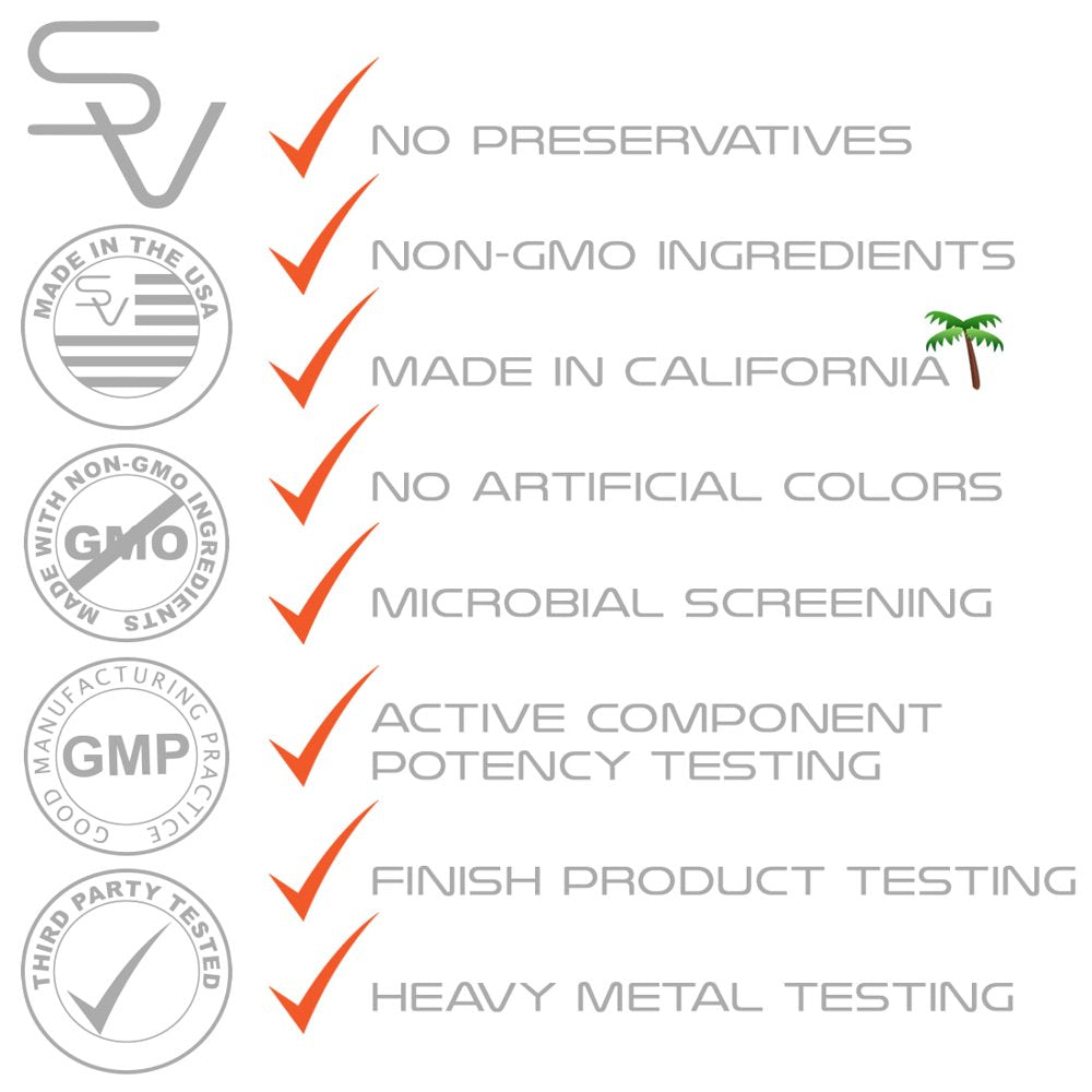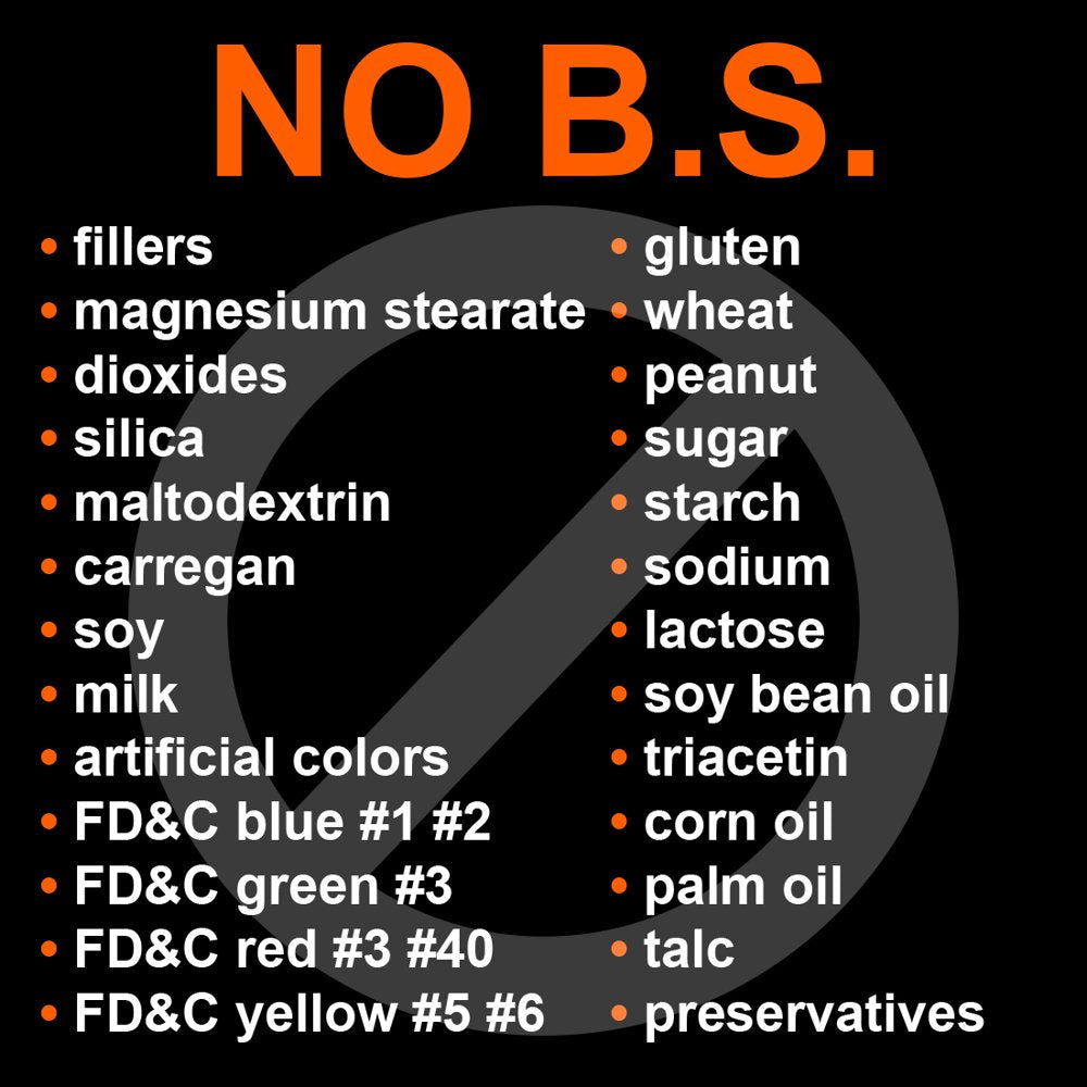 - Made in the USA without Bad Stuff such as fillers, magnesium stearate, dioxides, silica, maltodextrin, carrageenan, soy, milk, egg, corn, tree nuts, artificial colors, or preservatives.