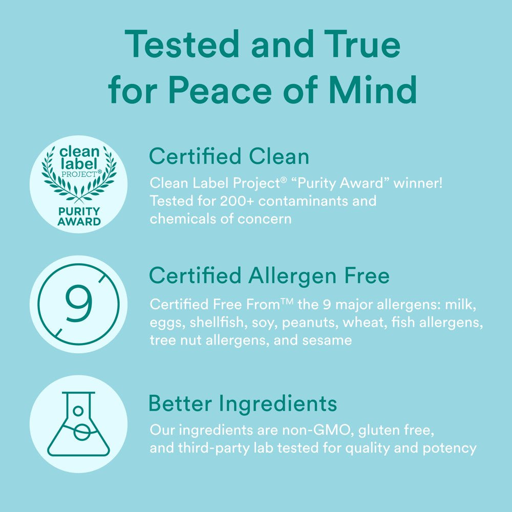 - Non-GMO, Clean Label Project Purity Award, Certified by the IGENTM Program