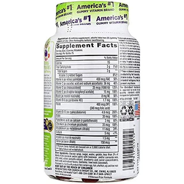 The chewable gummy formula features berry, peach and orange flavors for a delicious taste##The multivitamins are an excellent source of vitamin A, C, D, E, B6 and B12.##Clinically Proven Absorption##Contains no high-fructose corn syrup, no artificial sweeteners, no gluten, no dairy and no synthetic (FD&C) dyes.