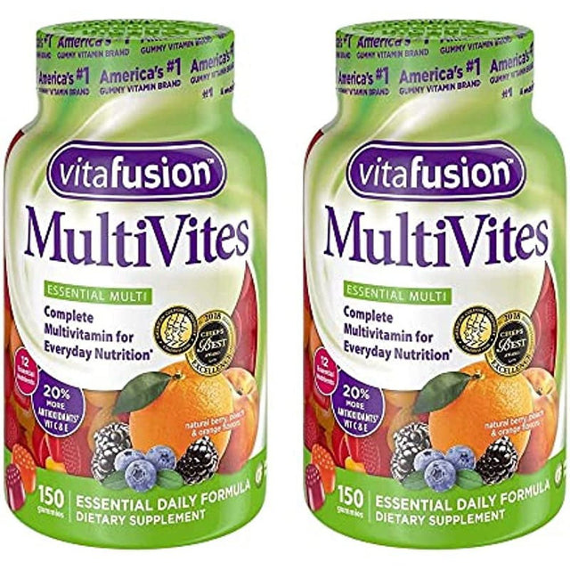 Vitafusion Multivites Gummies Vitamins for Adults Berry, Peach and Orange - 150 Ct, Pack of 2