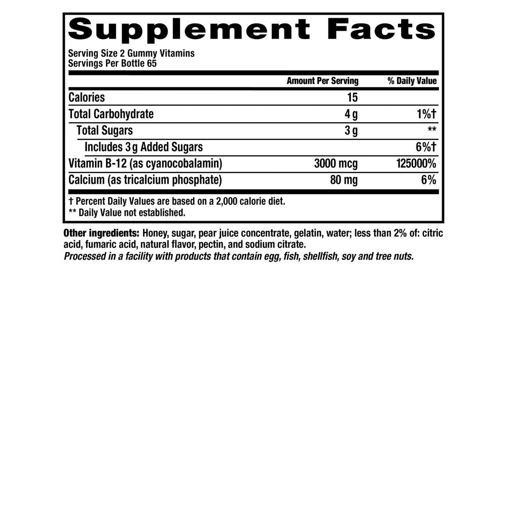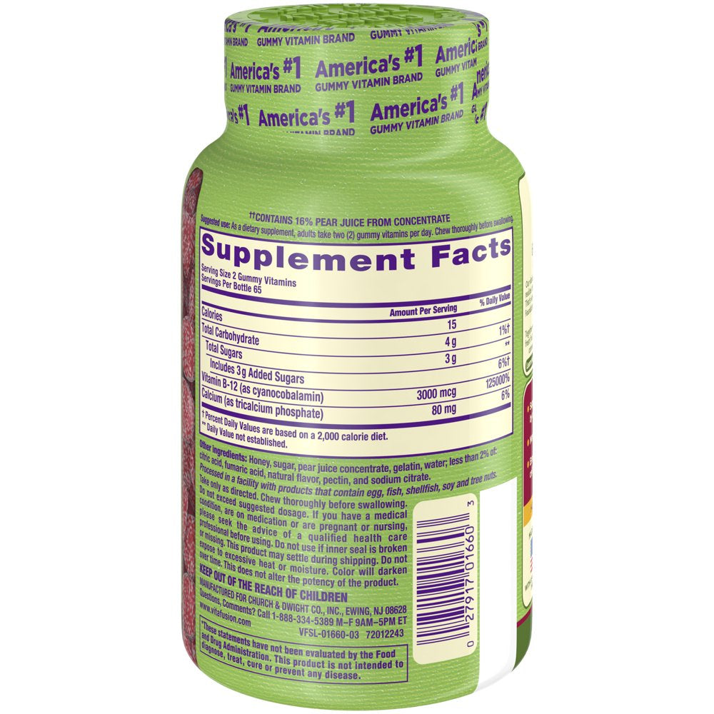 vitafusion Simply Good Vitamin B-12 fuses 3000 mcg per serving of vitamin B12 with great taste into delicious and nutritious gummies for a yummy way to support your body’s energy production[1]! Made with real fruit juice [3] and clover honey, Simply Good Vitamin B-12 dietary supplement is wholesome nutrition at its best. Delicious natural pomegranate flavor, real pear juice[3] from Pacific Northwest pears, and delicious clover honey. NO artificial flavors or sweeteners. At vitafusion, we believe taste and nutrition can be fused together to deliver the best vitamin experience, ensuring it’s an easy and delicious part of your day. For over 12 years, we’ve been helping people to live happy and healthy lives with our gummy vitamins and supplements. Anything is possible when great nutrition is your foundation. Take a fruitful step toward a healthier, happier world with America’s #1 gummy vitamin brand. Vitamin Better! [1] These statements have not been evaluated by the Food and Drug Administration. This product is not intended to diagnose, treat, cure or prevent any disease. [3] Contains 16% fruit juice from concentrate