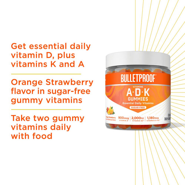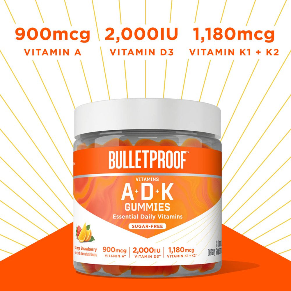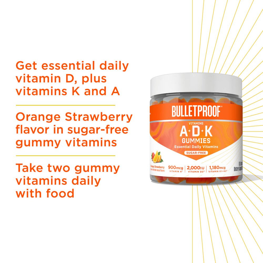 Vitamins A-D-K, 60 Sugar-Free Gummies, Strawberry Orange Flavor |1000Mcg K1, 900Mcg A, 180Mcg K2, 50Mcg D3 | High Potency Bulletproof Keto Supplement for Heart, Bone and Immune Support
