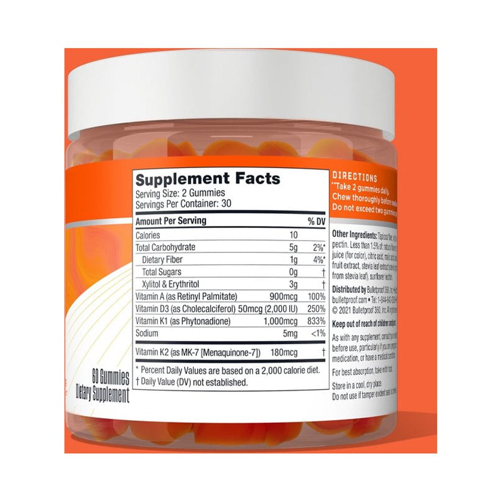 It’s time for a better vitamin D gummy, without hidden sugar. Bulletproof Vitamins A-D-K Gummies give you essential vitamins that help your body work better when taken together. Instead of taking a separate vitamin A gummy, vitamin K gummy and vitamin D gummy, this is your one-stop-shop for bone, heart and immune support.