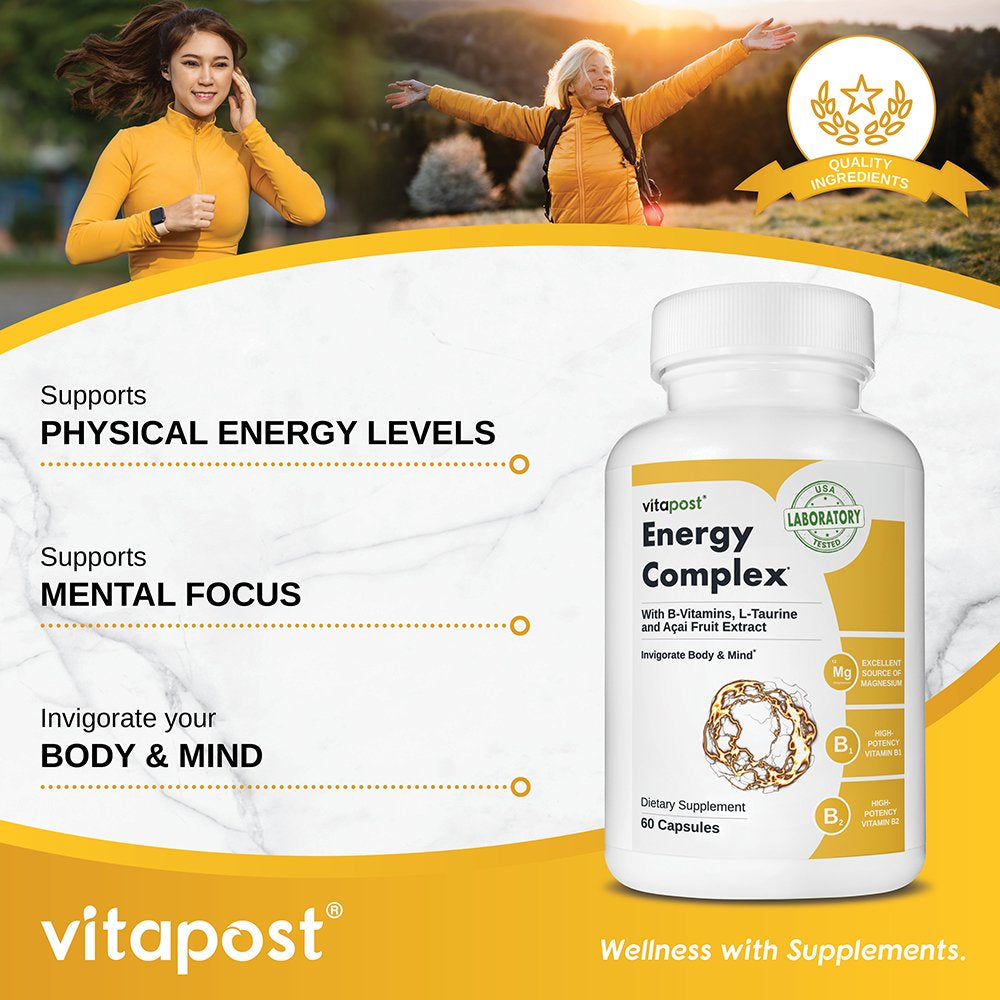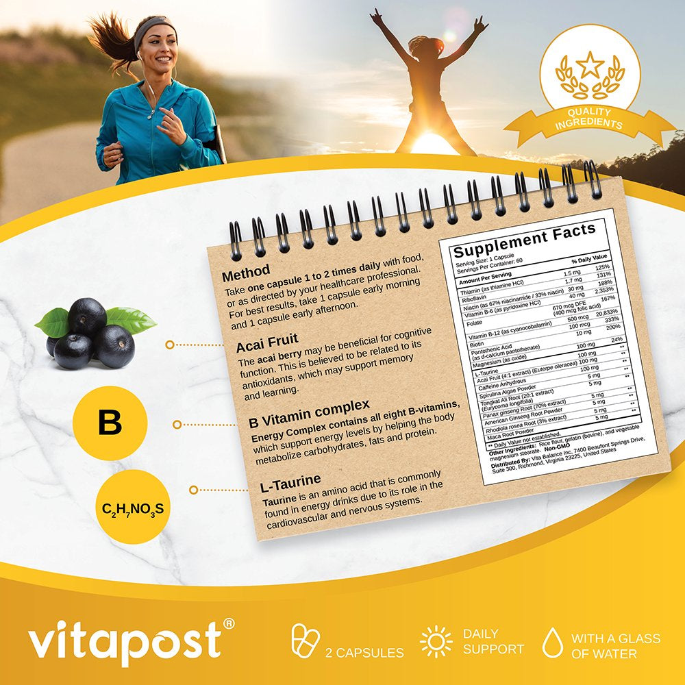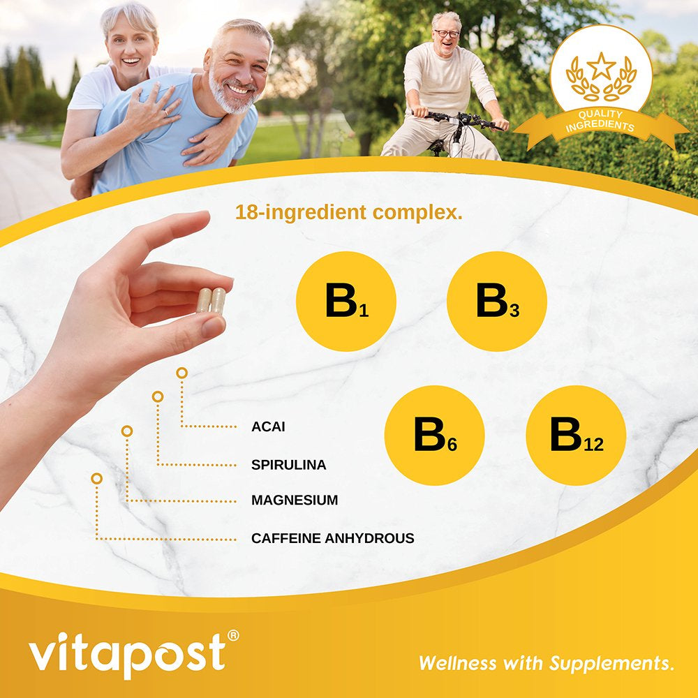 Vitapost Energy Complex Supplement with B-Vitamins, Caffeine - 60 Capsules