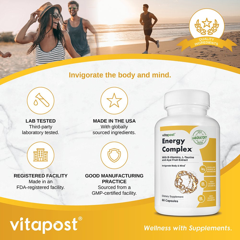 - VitaPost Energy Complex is a quality dietary supplement that’s manufactured in an FDA-registered, GMP-certified facility in the USA