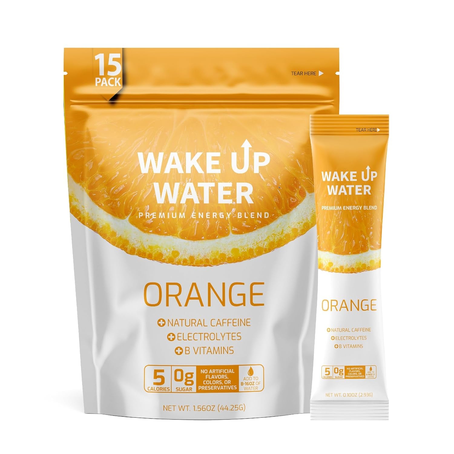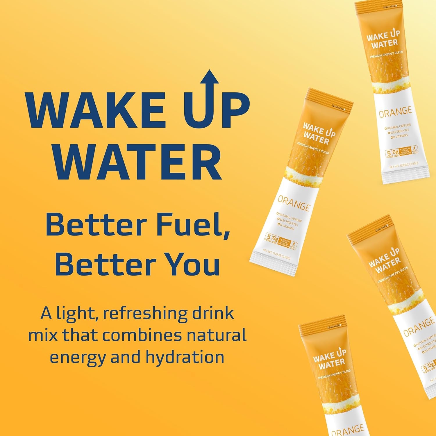 Wake up Water Energy + Hydration Mix – Energy + Hydration Powder Packets with Natural Caffeine, Electrolytes, B Vitamins | No Sugar | Daily Fuel with No Crash or Jitters | (Orange)