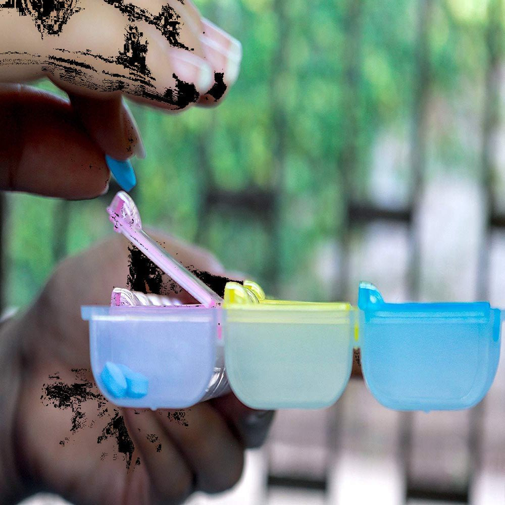 - REMOVABLE LIDS! CONVENIENT AND EASY TO USE: This weekly pill reminder comes with snap lids that indicate the day of the week with a letter. Its lids are translucent, so you'll know if you have taken your medicine without opening the lid