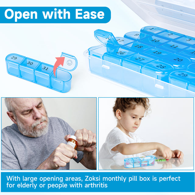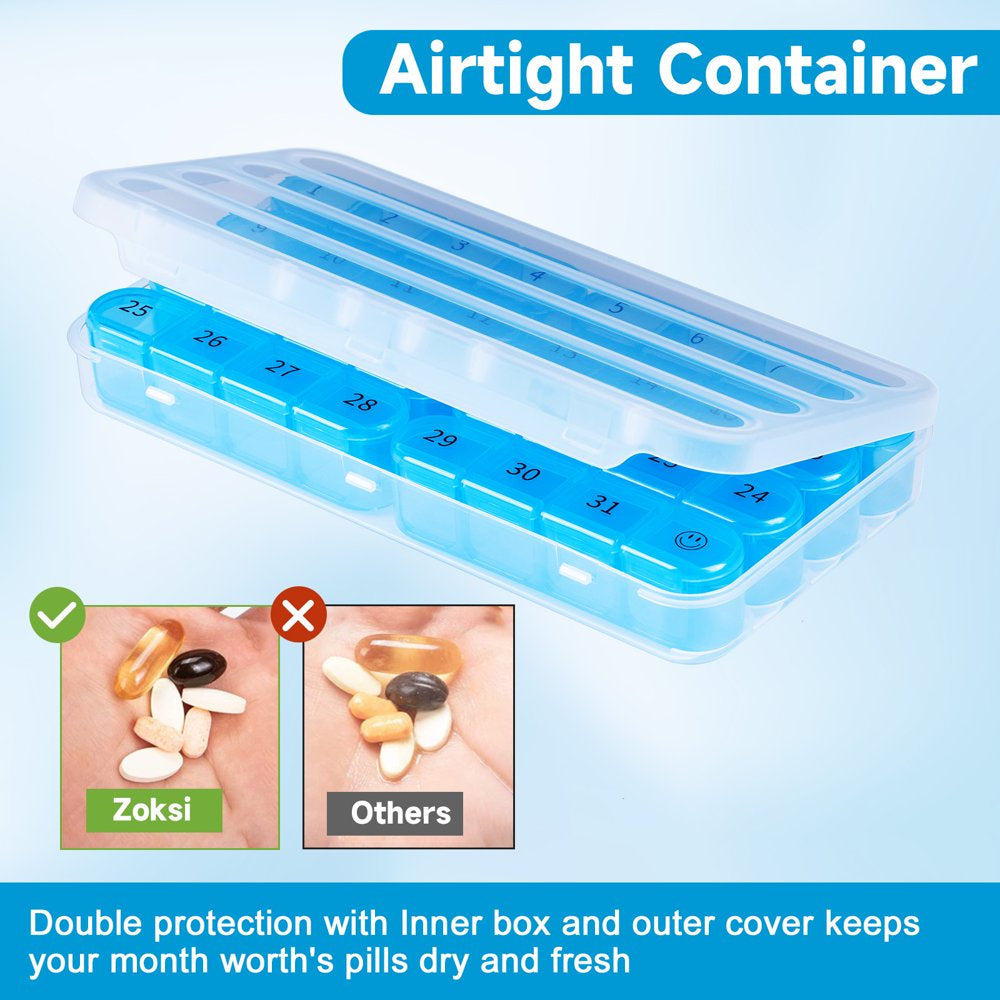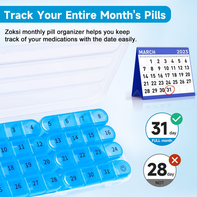 - 【31 Day Pill Organizer】 Are you still struggling to organize your medication once a week? The Zoksi Monthly Pill organizer 1 time a day will help you organize your entire month's medication at once! Manage your entire month's medication at the beginning of each month, more conveniently and easily.